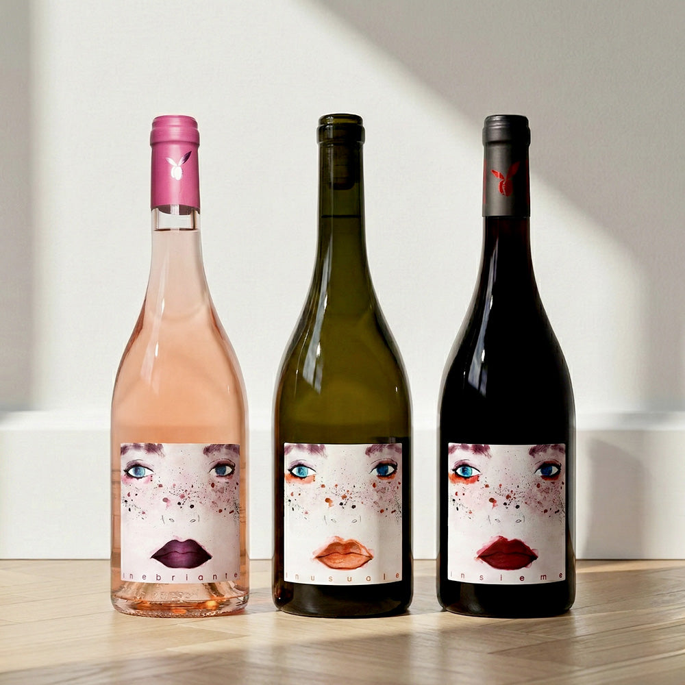 La Box Inserrata Selezione Inebriante, Inusuale e Insieme è una proposta esclusiva che riunisce tre espressioni diverse e complementari del territorio toscano. Un percorso che attraversa rosato, bianco e rosso, guidato da equilibrio, identità e carattere.